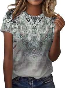 Summer Tops for Women Dressy Casual Crew Neck T-Shirt Tops Vintage Printed Tunic Tops 2024 Short Sleeve Shirts